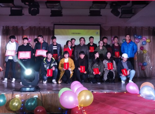 晚会由艺术团带来的一段婀娜多姿的《开场舞》拉开帷幕。元旦晚会节目形式多样,内容丰富,精彩纷呈,流行与古典兼收,温情与火热并举,其中包括舞蹈、歌曲、小品、话剧、说唱、器乐等多种表演形式。17371班出演的话剧《大话西游》极富创意,他们绘声绘色的表演让台下笑声、掌声、喝彩声不断;歌曲表演《追光者》《走在冷风中》《残酷月光》或浪漫温馨,或轻快悠扬,或活泼动感,让观众心旷神怡,沉醉其中;而令人捧腹大笑的小品表演《他样人生》更是让观众乐不可支,幽默风趣的台词、滑稽搞笑的动作引得观众们掌声连连,欢笑不断;接下来,由分团委表演的串烧舞蹈《带你去旅行》风格新颖别致,独具一格。节目中还穿插了微信抽奖环节,使现场气氛不断高涨。晚会还为《一二·九大合唱》获奖人员、体育节获奖人员、百生讲坛获奖人员、优秀青年志愿者举办颁奖仪式,院长及学院领导给获奖人员颁奖,并合影留念。